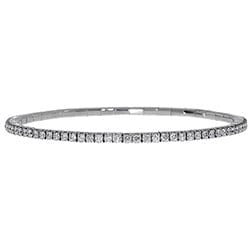 Eternity, redefined. This sleek and graceful bangle showcases a continuous stream of round brilliant diamonds—each secured in a classic 4-prong setting—for a total of 2.30 carats. Designed with a flexible fit that contours to your wrist, it offers the elegance of a traditional tennis bracelet with the ease of modern movement. Effortless, radiant, and endlessly wearable.