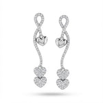 Fancy Twist Pave Diamond Dangle Earrings with Heart Drop in 14K White Gold 1.10 Carats Total Weight