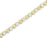 Modern geometry, timeless allure. This elegant bracelet features a striking mix of round and square diamonds, each bezel-set to enhance their brilliance and create a seamless flow of light. Crafted in a sophisticated blend of 18K white and yellow gold, it offers nearly 3.00 carats of bold yet graceful sparkle—a perfect harmony of contrast, structure, and beauty.