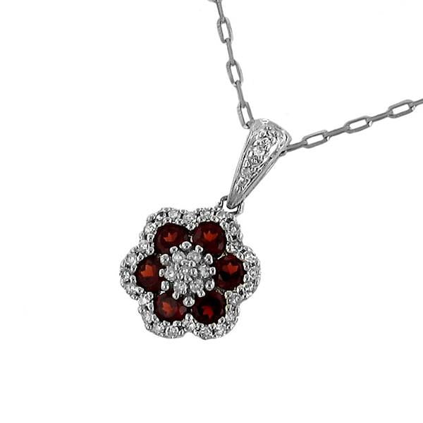 14k White Gold Garnet and Diamond Flower Necklace 0.66cttw