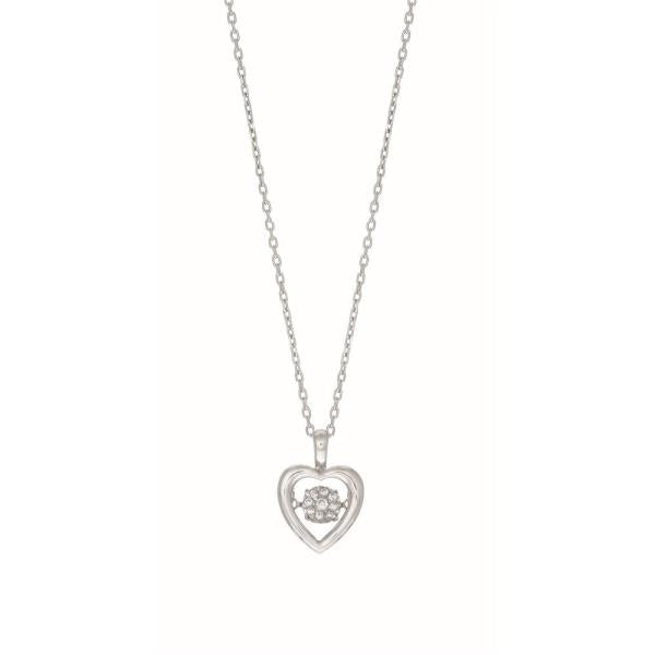 Sterling Silver Dancing Diamond Open Heart Necklace 0.07cttw – 18"