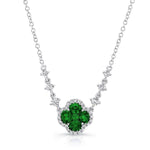 A vibrant expression of natural elegance. Set in 18k white gold, this pendant features four richly hued oval emeralds totaling 0.59cttw, accented by 30 round brilliant diamonds with a total weight of 0.38cttw. The perfect harmony of color and sparkle, it’s a piece that captures timeless beauty in every detail.