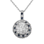 Halo Design Diamond and Blue Sapphire Pendant with 2.16ct Center Diamond and Milgrain Detail – 2.65cttw