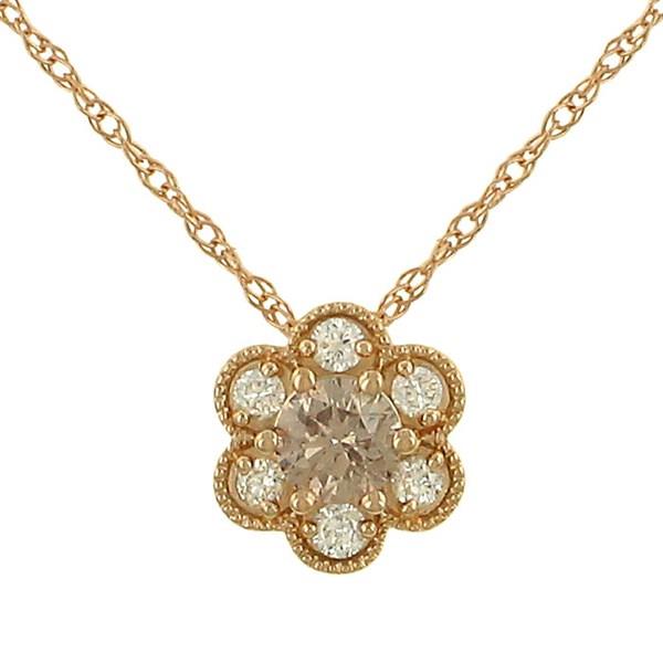 Round Diamond Flower Pendant with Milgrain Trim on Singapore Chain – 0.50cttw