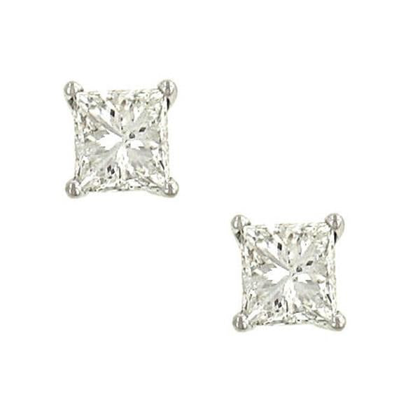 14K White Gold Princess Cut Diamond Stud Earrings 1.01cttw (IGI Certified, I/SI2)