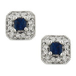 14K White Gold Sapphire and Diamond Halo Stud Earrings