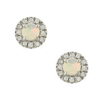 Opal and Pavé Diamond Halo Stud Earrings in 14K Gold (0.34cttw Opal, 0.14cttw Diamonds)