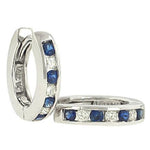 14K White Gold Diamond and Blue Sapphire Channel-Set Hoop Earrings (Gem .22cttw / Diamond .14cttw)