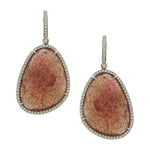14K Rose Gold Cherry Quartz Slice Dangle Earrings with Pavé Diamond Trim 24.27cttw