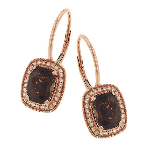 Smokey Topaz and Pavé Diamond Leverback Earrings with Milgrain Detail (Total 3.21cttw – Smokey Topaz 3.06cttw, Diamonds .15cttw)
