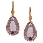 Zeghani Pear-Shaped Amethyst and Diamond Halo Dangle Earrings (11.73cttw Gemstones / .41cttw Diamonds)
