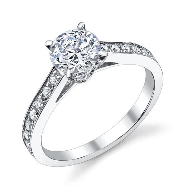 Ladies 14K White Gold Pavé Elegant Engagement Ring – Semi-Mount for 0.24–1.00 ct Round Center Stone (Center Stone Not Included)