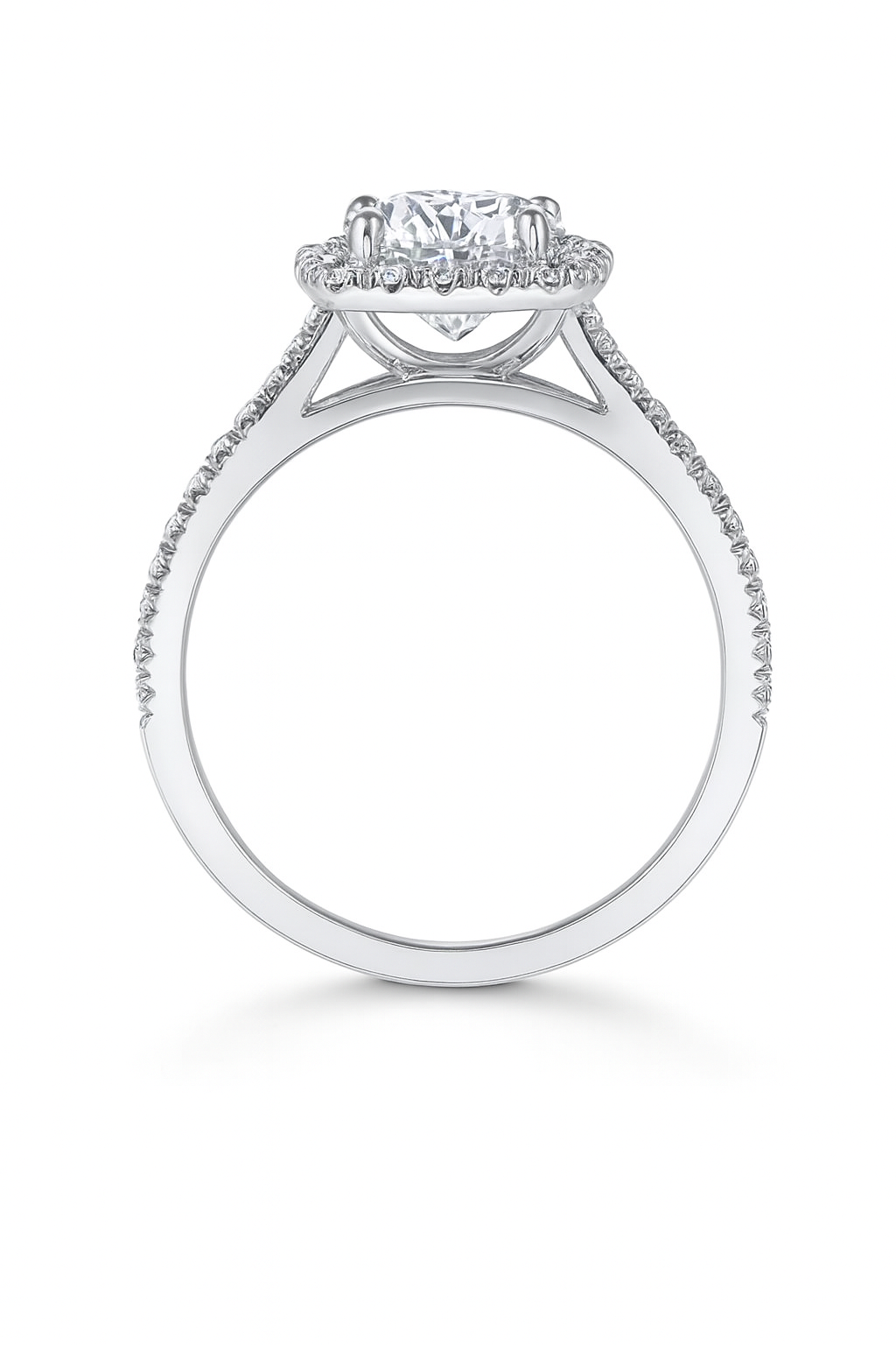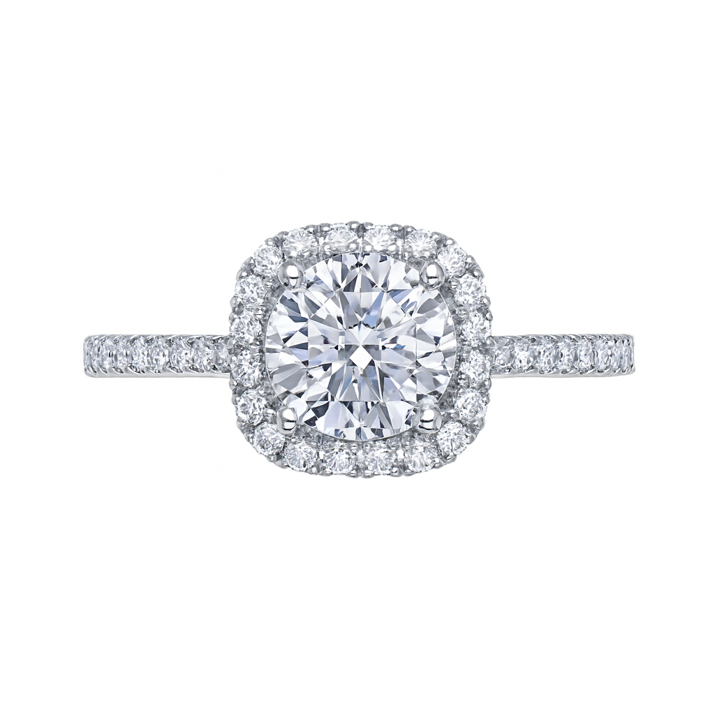 Unit price perElegant and luminous, this halo engagement ring in 14K white gold is designed to enhance your round center stone with a delicate frame of pavé-set diamonds. The refined silhouette adds timeless sparkle and graceful dimension. Crafted as a semi-mount, it fits a round diamond ranging from approximately 0.29 to 1.00 carats — the perfect setting for a love that shines endlessly.