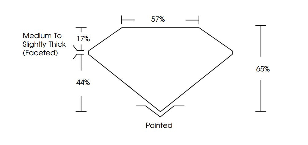 It features excellent polish and symmetry, contributing to superior light performance. The proportions include a 57% table and 65% depth, delivering a classic balance of brilliance and fire. Created using the CVD method and classified as Type IIa, it denotes high chemical purity.