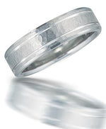 Novell Men’s 6mm Hammered Platinum Wedding Band with Polished Stripes and Beveled Sides