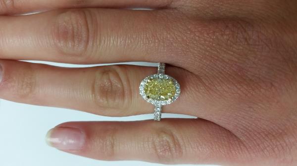 Oval Fancy Intense Yellow Diamond Engagement Ring in 18K White Gold with 1.5 ct Center and 0.50 ct Accent Diamonds
