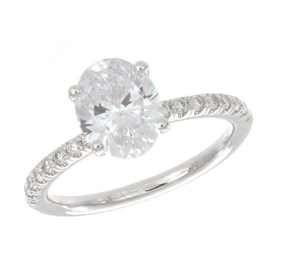 Refined sparkle, crafted to highlight your diamond. This elegant engagement ring features 18 round brilliant diamonds pavé-set along the band, offering subtle shimmer and timeless beauty. With a total weight of 0.25 carats, this setting provides the perfect balance of delicacy and brilliance — a classic foundation for your chosen center stone.
