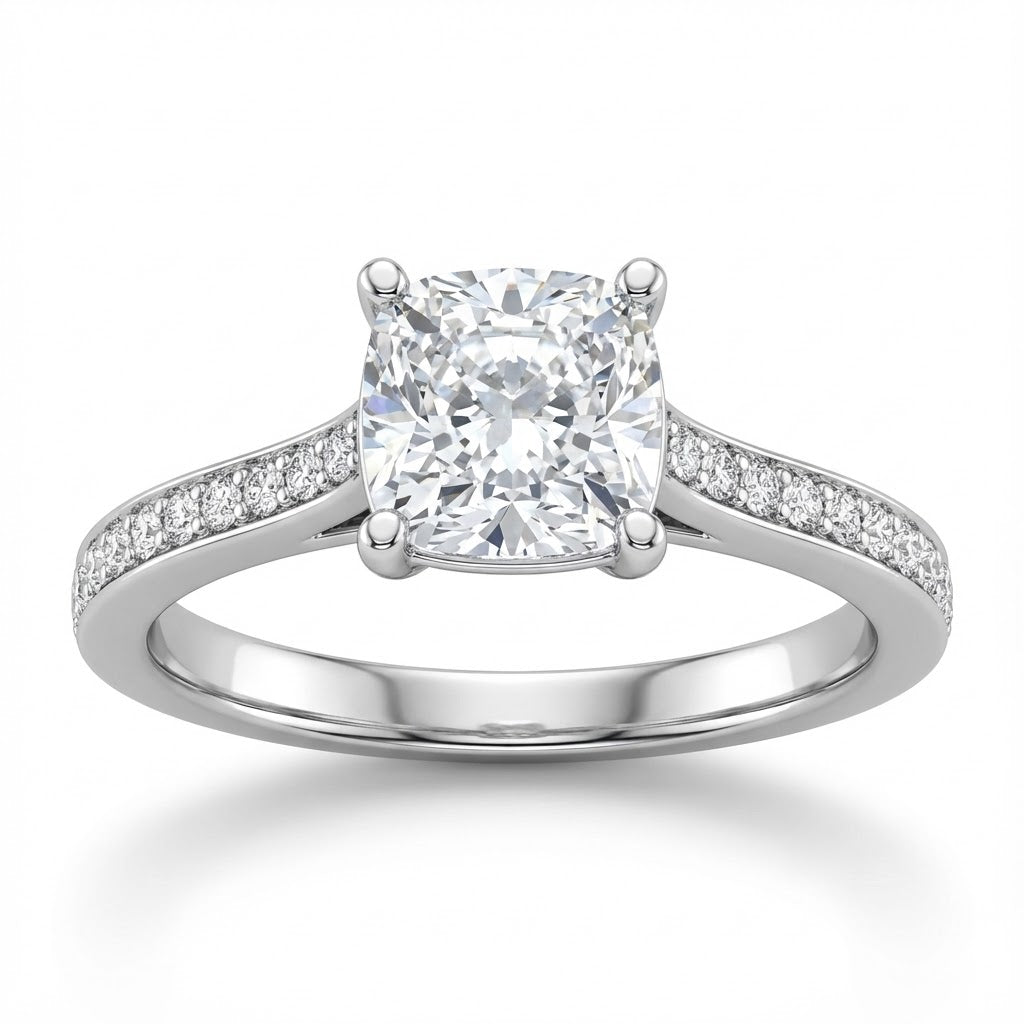 A subtle shimmer with timeless grace. This pavé diamond engagement ring in platinum features a sleek and elegant band lined with approximately 0.20 carats of finely set diamonds. Designed to complement and elevate your chosen center stone, the setting offers a refined foundation that blends quiet brilliance with lasting beauty — perfect for a love that grows stronger every day.
