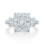 7.54 ct Radiant Cut Diamond Three-Stone Engagement Ring in 18K White Gold with Princess and Round Diamond Accents