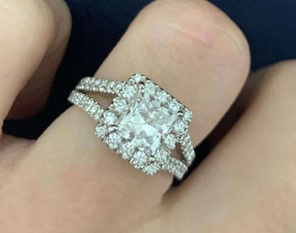 Women's 18K W/G Princess Halo Engagement Ring ||| Split Shank ||| princess Cut Center Stone 1.51ct ||| Sidestones 1.56cttw ||| F color SI2; GIA |||