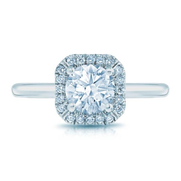 Asscher Halo Solitaire Engagement Ring in 14K White Gold with 0.13 ct Total Diamond Weight (Center Stone Not Included)