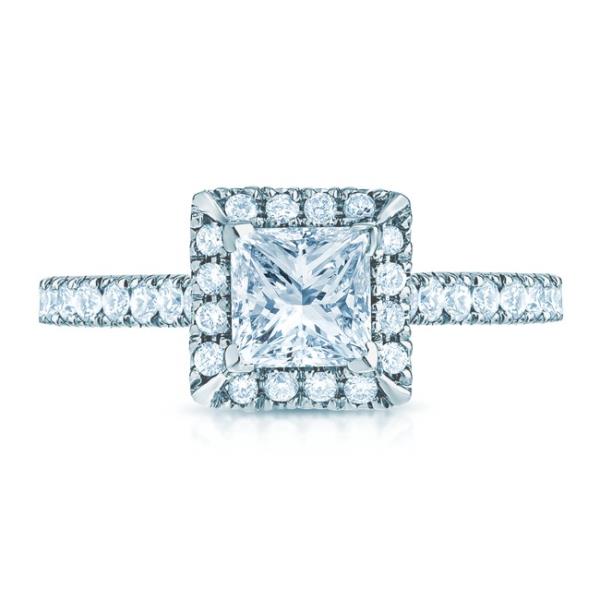 Unit price perModern lines meet timeless sparkle. This 14K white gold engagement ring is designed to showcase a princess cut center stone, accented by 34 round brilliant diamonds totaling approximately 0.40 carats. The clean, angular beauty of the center is perfectly complemented by the soft shimmer of pavé-set diamonds along the band — a setting that captures the strength and elegance of your love story.