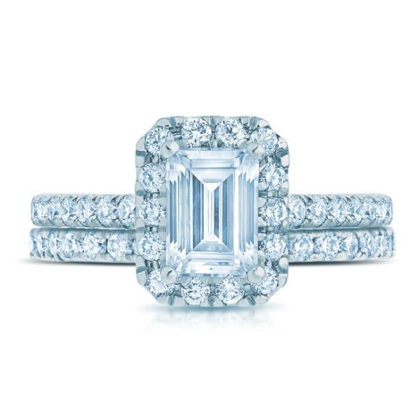 Unit price perSleek lines meet timeless brilliance. This halo engagement ring in 14K white gold is designed to frame your emerald cut center stone with elegance and light. Featuring 30 round brilliant diamonds totaling approximately 0.57 carats, the shimmering halo and diamond-accented band bring refined sparkle to every angle — a graceful setting for a love that’s beautifully defined.