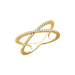 Elegant and contemporary, this criss cross ring features intersecting bands of warm 14K yellow gold adorned with shimmering diamonds. The flowing design offers a modern twist on classic diamond elegance, perfect for everyday sophistication or special occasions.