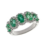 5-Stone Oval Green Emerald and Diamond Halo Band in White Gold – 2.49cttw