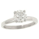 Unit price perElegantly simple, eternally meaningful. This classic solitaire engagement ring in 14K white gold features a 1.00 carat round brilliant diamond, securely set in a traditional four-prong setting. With exceptional E color and SI1 clarity, this EGL-certified diamond radiates pure brilliance and timeless beauty — a sophisticated symbol of lasting love.