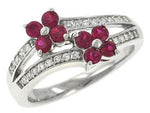Ladies 2 Row Pave Diamond and Flower Design Ruby Fashion Ring Gem .59cttw Diamond .17cttw (Available in sizes 5.75 to 7.75) ||| #90609