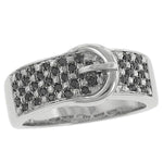 Bold yet elegant, this buckle-inspired design is adorned with 39 round black diamonds in a classic prong setting, totaling 0.20 carats for a sophisticated touch of contrast and style.
