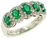 Ladies 5 Stone prong Set Oval Green Emerald and Pave Diamond Fashion Ring Gem 1.30cttw Diamond .42cttw ||| #89000