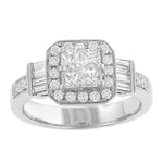 Princess Cut and Cushion Halo Round Diamond Fashion Ring with Bar Set Baguette and Round Diamond Sides with Milgrain Trim Diamond 1.00cttw G-H/si2 ||| #158889